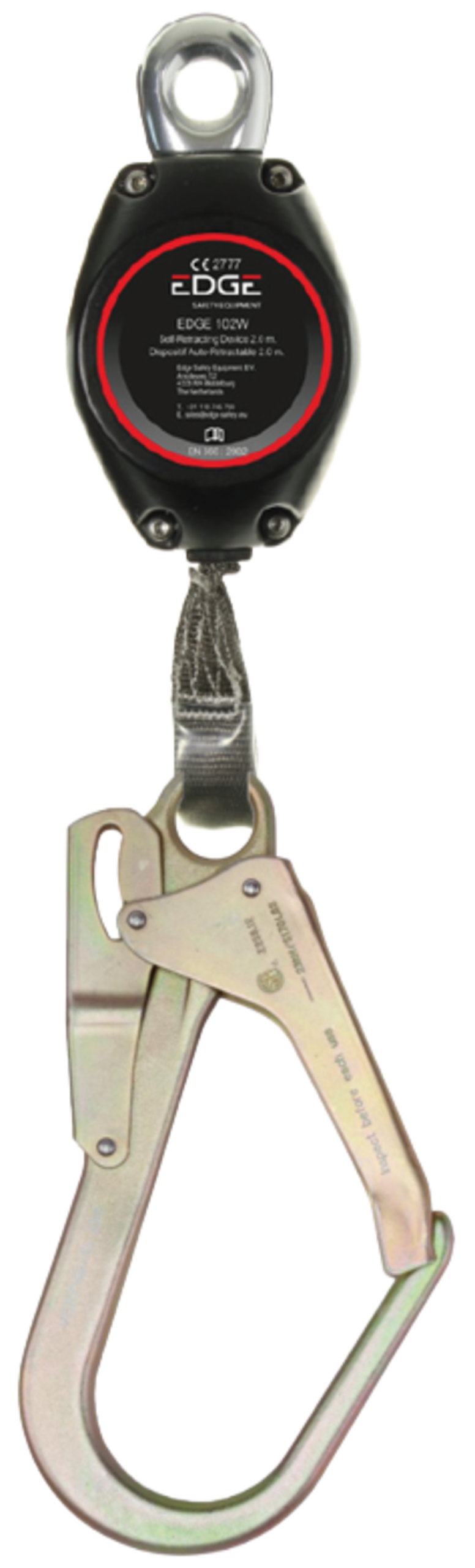 Der Auffanggurt EDGE 102WF hat ein stabiles Aluminiumgehäuse und ein 2 Meter langes Dyneema®-Gurtband (25 mm). Das schnittfeste Dyneema®-Gurtband ist sehr widerstandsfähig und trägt dazu bei, dass sich die Benutzer bei Arbeiten in der Höhe sicher fühlen. Dieses Modell enthält einen Brooks Stahlgerüsthaken mit Karabiner und Drehöse für eine reibungslose und sichere Verbindung. Geeignet für Benutzer bis zu 140 kg.