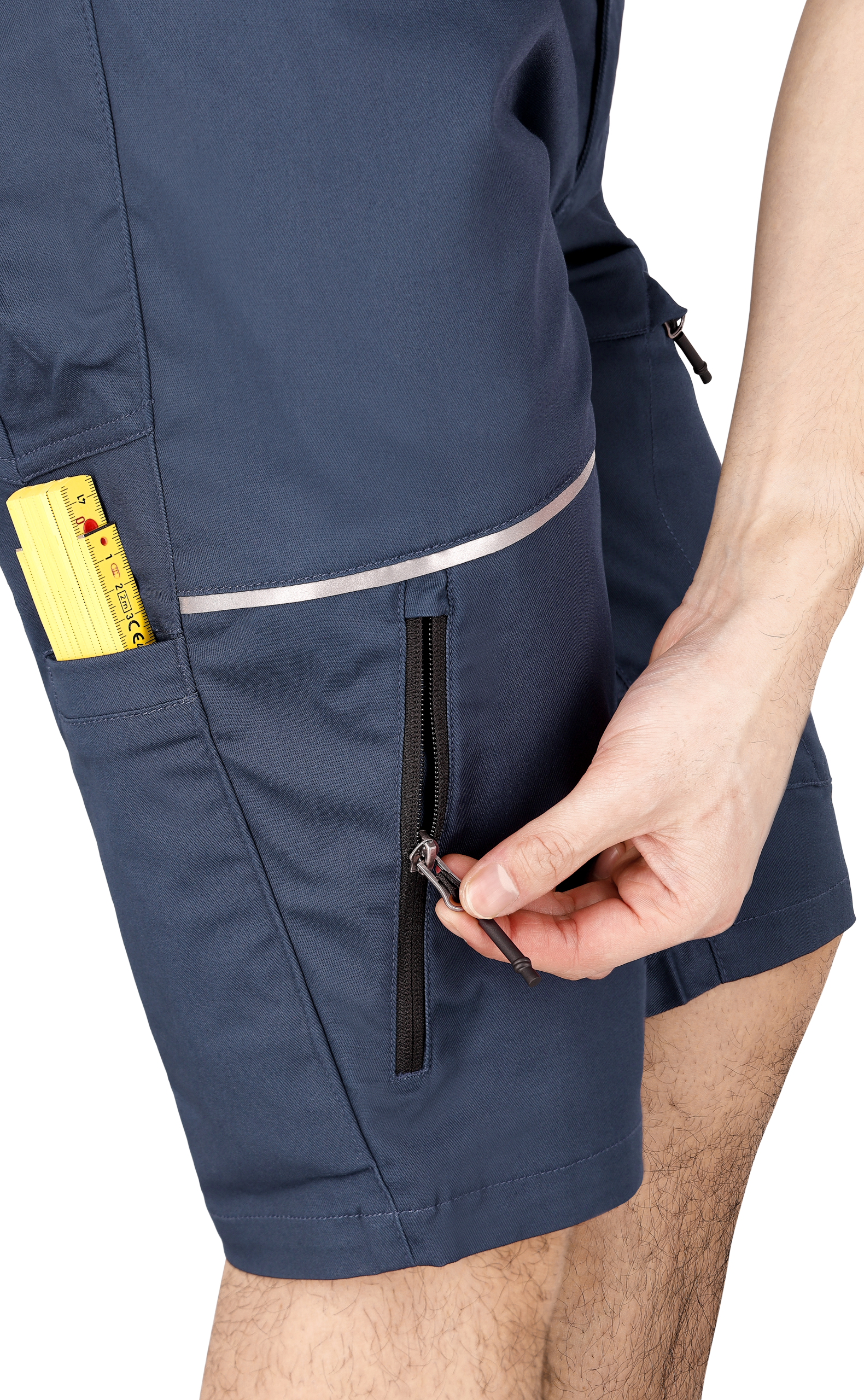 Designed for exceptional versatility in hot conditions. The Mekong shorts offer unbeatable comfort with an elastic waistband and strategically placed 4-way stretch fabric for maximum mobility. Equipped with a range of practical pockets - including two front pockets, two rear pockets and a dedicated tool/pen pocket - the Mekong Shorts are designed to meet your work needs. A D-ring above the front pocket ensures secure storage for your ID card or keys, while reflective design elements provide a contemporary touch and increased visibility.