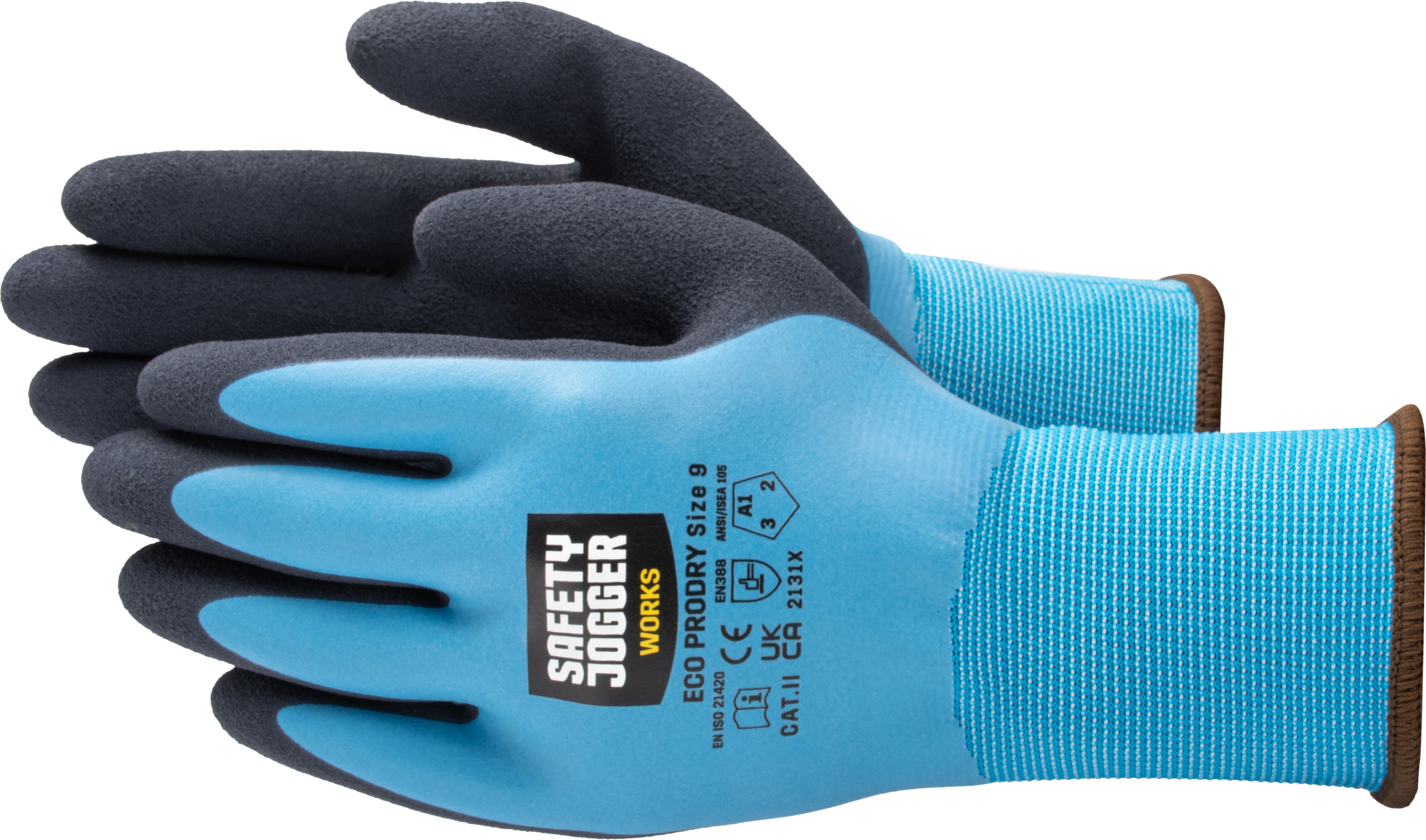 Terbuat dari bahan daur ulang, sarung tangan PRODRY yang mulus dan anti air dirancang untuk aktivitas di segala cuaca. Lapisan poliester/nylon memiliki lapisan lateks penuh (warna biru langit) dan lapisan lateks kasar kedua (warna hitam) pada telapak tangan. Menjaga tangan tetap kering dalam kondisi kerja yang basah. Lapisan busa lateks yang mengisolasi terhadap kondisi cuaca dingin.
