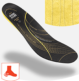 Uitneembaar comfortabel antistatisch voetbed dat zorgt voor pasvorm, geleiding en optimale schokabsorptie in hiel en voorvoet. Ademend en vochtabsorberend.